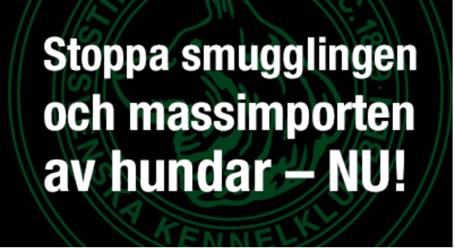 Svenska Kennelklubben kräver politiska åtgärder för att komma åt problemet med smuggling och massimport av hundar. Därför har SKK startat en namninsamling som senare ska överlämnas till våra beslutsfattare.